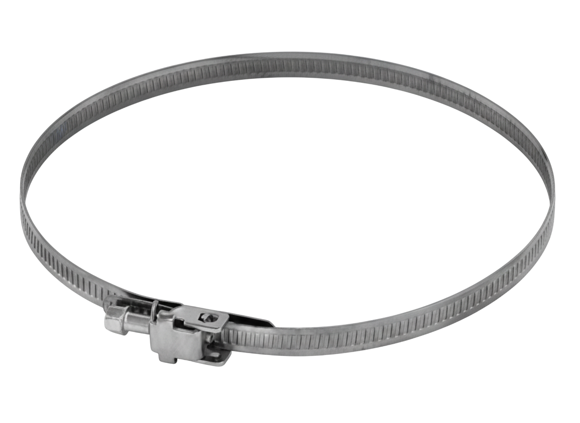 Description A metal clamp for all types of flexible ducting. The clamp consists of the band and the flip-up band lock. This system allows an easy and quick application thanks to the automatic locking that forms the right diameter of the duct.