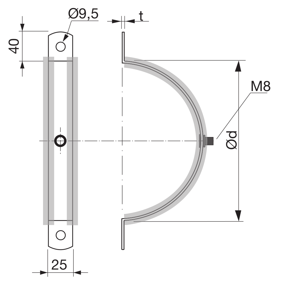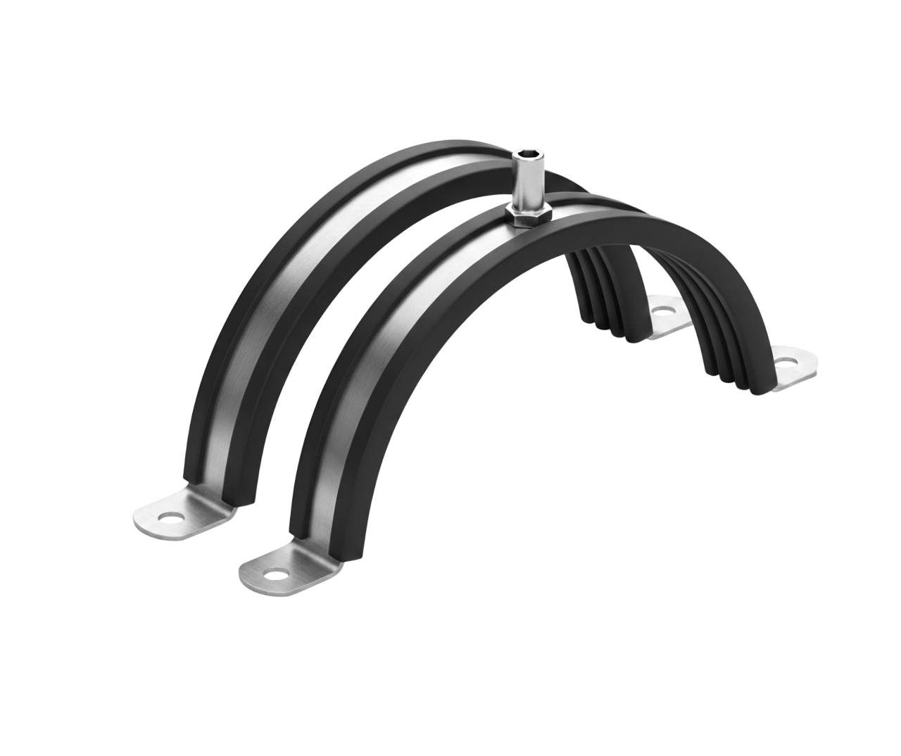 Description Suspension clamp with antivibration rubber. Two half parts galvanized sheets 25 x 2.0 mm with antivibration rubber, one with an 8 mm threaded bushing. At insulated duct it is recommended that the suspension clamp is mounted inside the insulation. * Sold in pairs.