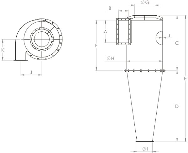 Entirely welded, the FA cyclone is made of 2 and 3 mm sheet metal, painted with anti-rust paint and topcoat of epoxy paint.
