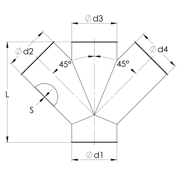 Double branches are longitudinally stitch-welded with a spotwelded side branch for use in overpressure, under-pressure and pressureless systems. All our conical branches are produced so that all types of rings can be used to mount them.