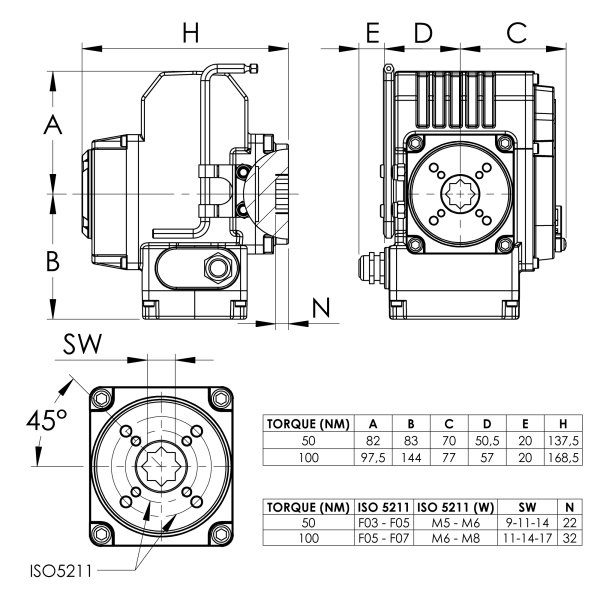 | Electric rotating actuator HB50 220V AC 50Nm (-20°/+70°) IP67 DIN-ISO 5211 | NDAA000001 |
