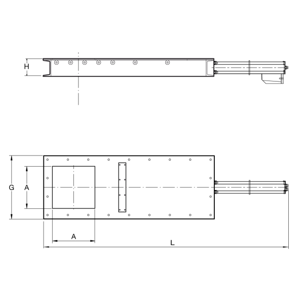 Full welded electric silo outlet gates to discharge material from a cyclone, a silo, or such. The outlet gate blade is secured in an open or closed position by means of the electric worm gear drive motor 0.18 kW, 230/400 V AC 50/60 Hz foreseen with limit switches.
