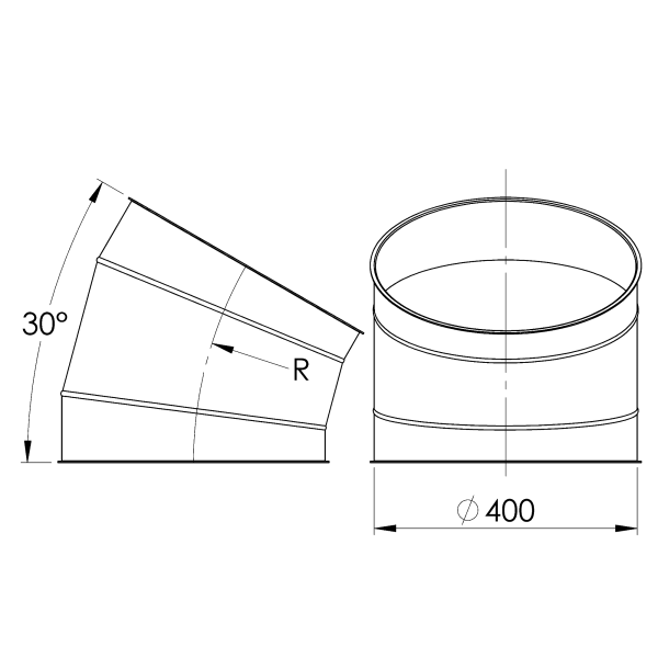 Constructed from welded segments, fully welded together, these segmented bends 30° provide a robust and airtight solution.