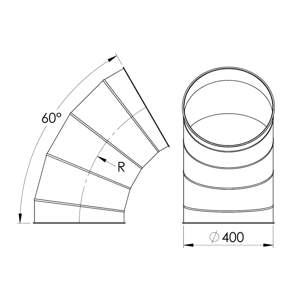 Precision-engineered, fully welded segmented bends 60° for applications demanding airtightness.