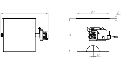 Full welded electric throttle valves with integrated silicone seal in the body to regulate, open, or close a ducting line in an installation (possibility to regulate). The throttle valve blade is secured in a desired position by means of the electric plug-in motor 24 V DC. (3D illustration including S2A position indicator) Throttle valves Ø100 up to Ø200 have a GM model Belimo motorozation. The switching time is 150 seconds.