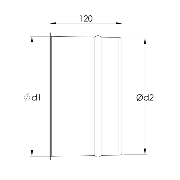 Hose reduction pieces are standard longitudinally welded designed for the assembly of various types of hoses for use in overpressure, under-pressure and pressureless systems.The exterior diameter is slightly smaller than the nominal ducting diameter to fit the flexible hose. A boom in the middle prevents the hose from sliding off.Delivery without the hose clamp.
