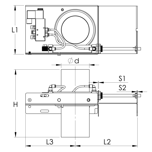The use of the CADB pneumatic sliding dampers optimizes the installation and allows that only the machines needed are used. This also allows for lower running costs. They are attached to the pipe with pipe connectors.