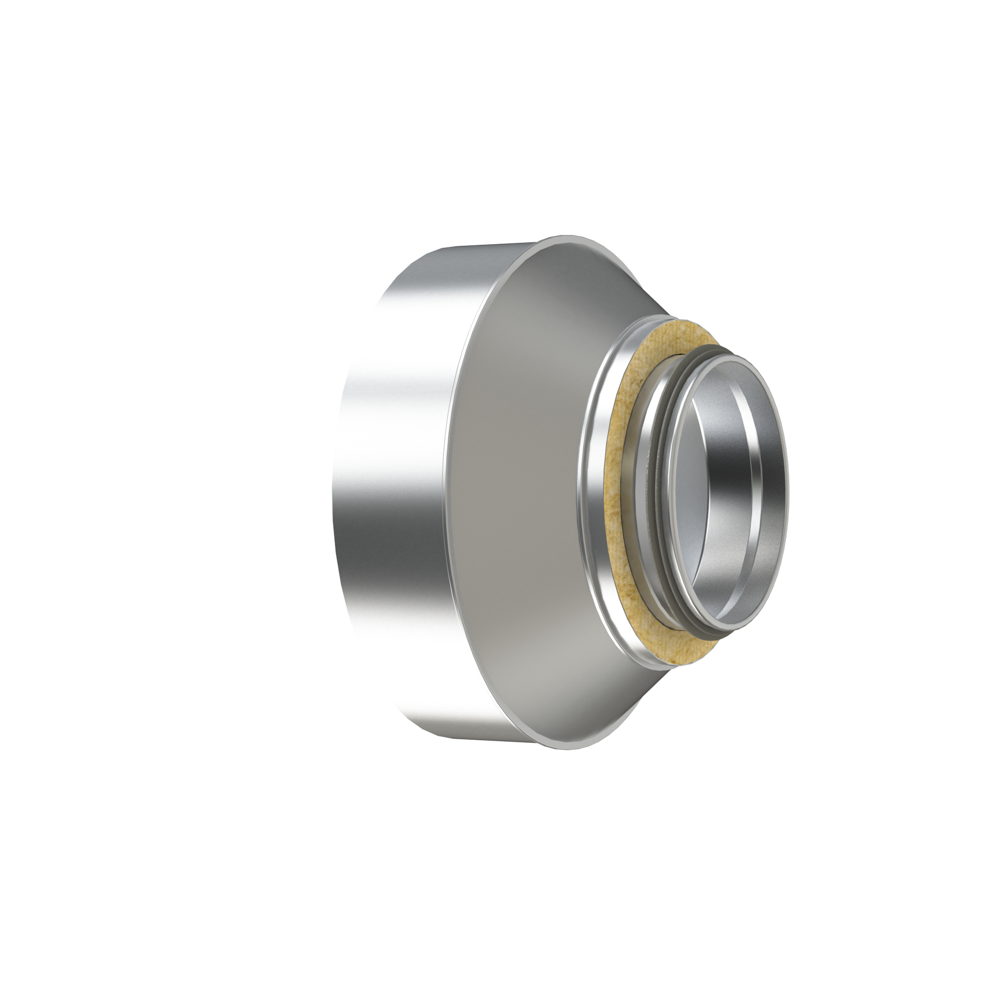 The reducer is double-jacketed and insulated with mineral wool, and is supplied with rubber seal on the inner dimension (Ød2) and female connection at the inner dimensions (Ød)
