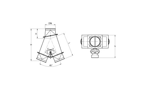 These diverters are designed to be used for falling material and light pneumatic transport (for example wood chips, polystyrene, etc.) in vertical ducting and have a 3 mm transition piece on the inlet and outlets.