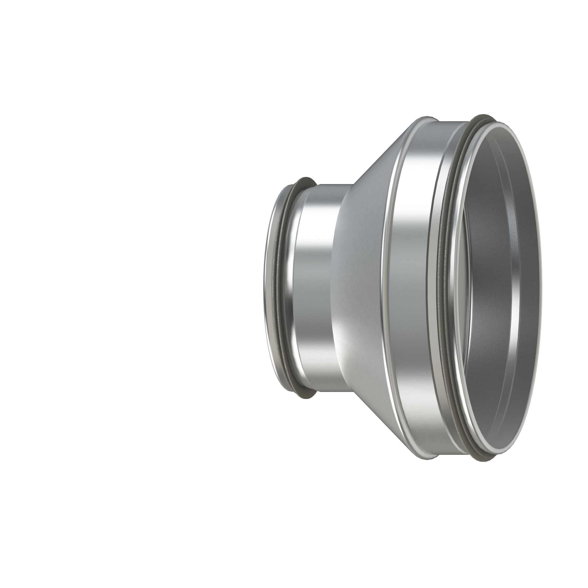 Pressed, concentric reducer to meet demands for short installation length with low pressure drop and low internal noise generation. Also available in other dimensions up to Ø400.