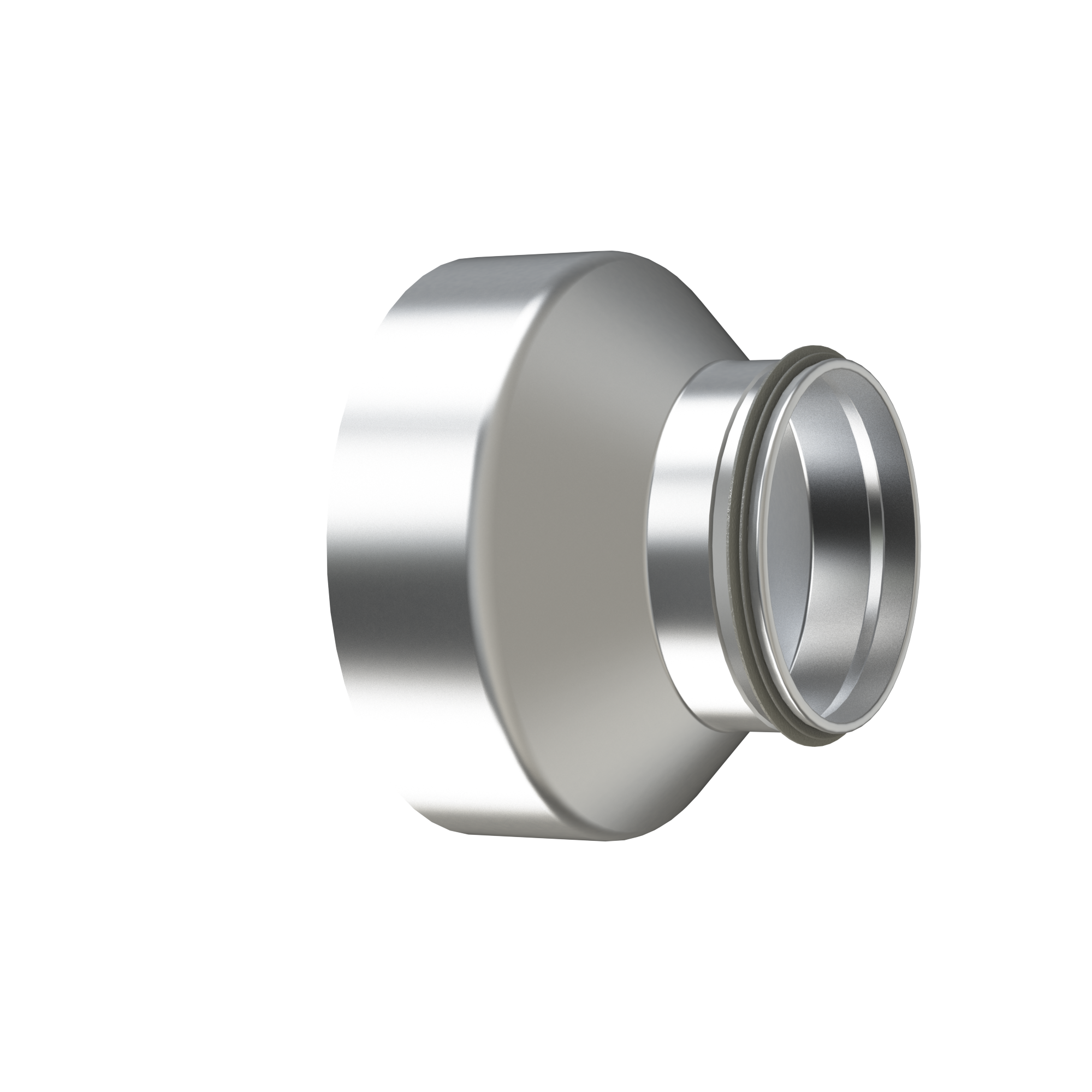 Pressed, concentric reducer with female coupling, with a 45° angle to meet demands for short installation length with low pressure drop and low internal noise generation. Ød fits outside another ftting. Also available in other dimensions up to Ø400.