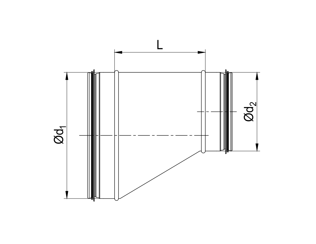 Long, eccentric, handmade reducer. Also available in other dimensions up to Ø400.