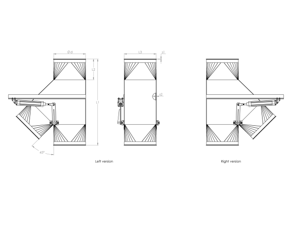 These diverters are designed to be used for falling material and light pneumatic transport (for example wood chips, polystyrene, non-fibrous material, etc.) in vertical ducting.