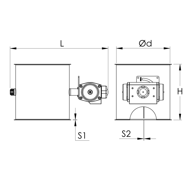 The change in direction of the blade is operated by a pneumatic rotating actuator connected to a monostable 5/2 NAMUR solenoid valve. Axle seals are used to the valve blade for better airtightness.