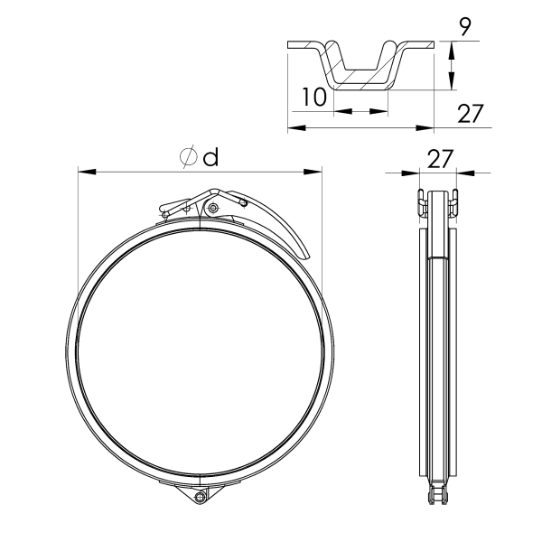 From Ø 80 up to Ø 400 mm with integrated hinge and handle. From Ø 450 mm, it is supplied without hinge and with an M8x80 bolt.