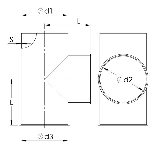T-branches are longitudinally stitch-welded with a spot-welded side branch for use in overpressure, under-pressure and pressureless systems.