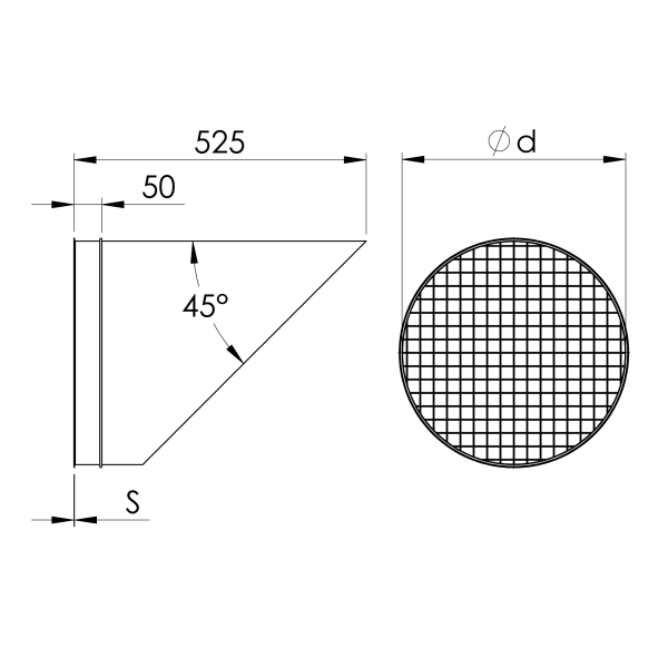Wall outlets are standard welded with a stitch-welder and integrated bird screen.Designed for horizontal mounting. Other mounting orientations are possible with bends.