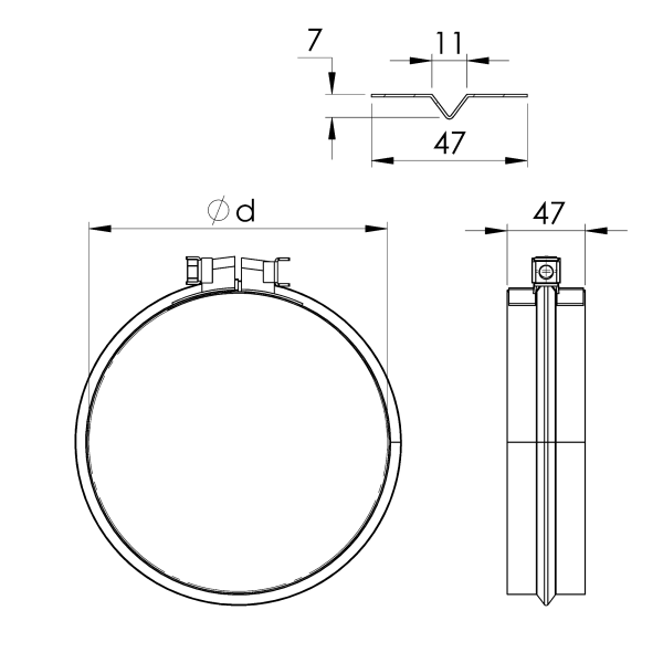 For assembly of ducting from 0.75 mm up to 1.5 mm. As an option, a rubber seal can be added for better airtightness.