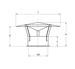 Chụp che mưa hàn kín hoàn toàn với độ dày tấm 1.50 hoặc 2.00 mm. Phục vụ cùng mục đích như chụp xả phản lực để xả khí qua mái. Từ Ø100 đến Ø200 có nón che phẳng, trong khi từ Ø224 đến Ø630 có nón che hình côn tích hợp nón trong.