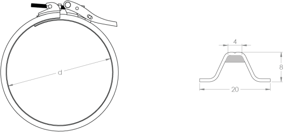 Đai khóa có lót xốp tích hợp và tay gạt điều chỉnh được. Từ Ø 80 đến Ø 140 mm có tay gạt điều chỉnh được và bản lề. Từ Ø 150 mm, đai được cung cấp không có bản lề và có tay gạt điều chỉnh được. Dùng để lắp ráp đường ống từ 0.75 mm đến 1.25 mm.